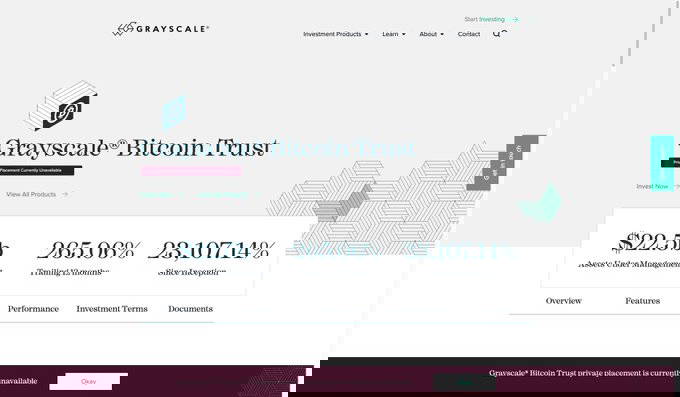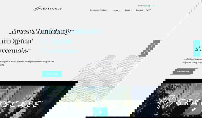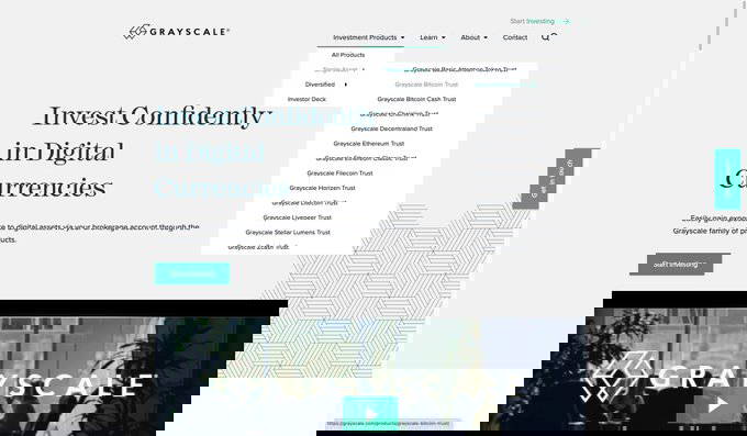 - Şimdi gelin ilk önce Grayscale'ın ana sayfasına gidelim. Gördüğünüz gibi bu fon ailesi Bitcoin ve diğer bazı Kripto varlıkları kendiniz almak yerine borsadan GRAYSCALE hisselerini alarak kolayca sahip olmanızı sağladığını söylüyor.