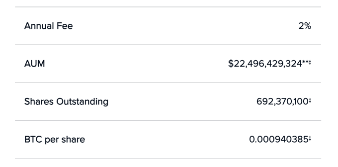 - Şimdi Biraz aşağıya doğru inerseniz, Bu fon hakkında detaylı bilgiye ulaşacaksınız: Gördüğünüz gibi şu anda bir tane bu fonun hissesi (ki Borsadaki kodu GBTC dir) 0.000940385 tane Bitcoin tutuyor. Yani siz bir tane GBTC hissesi satın alırsanız karşılığında 0.000940385 tane