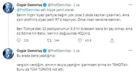 Özgür Demirtaş da bu paylaşımı üzerine Yayla'ya Twitter hesabından yanıt verdi.