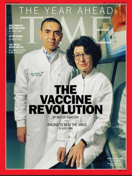 Türk bilim insanları Prof. Dr. Uğur Şahin ve Özlem Türeci, kurucusu oldukları BioNTech firması ile Covid-19’a karşı etkisi ispatlanmış bir aşı geliştirerek dünya gündemine oturmuşlardı. 2021'in ilk sayısında çift kapakla okurlarının karşısına çıkan dünyanın en köklü ekonomi ve politika dergilerinden TIME dergisi, 'The Year Ahead' özel sayısında ise "Aşı Devrimi" manşetiyle kapakta Prof. Dr. Uğur Şahin ve Özlem Türeci'ye yer ayırdı.