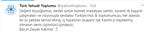 TÜRK YAHUDİ TOPLUMU SOSYAL MEDYA HESABINDAN DUYURDU
