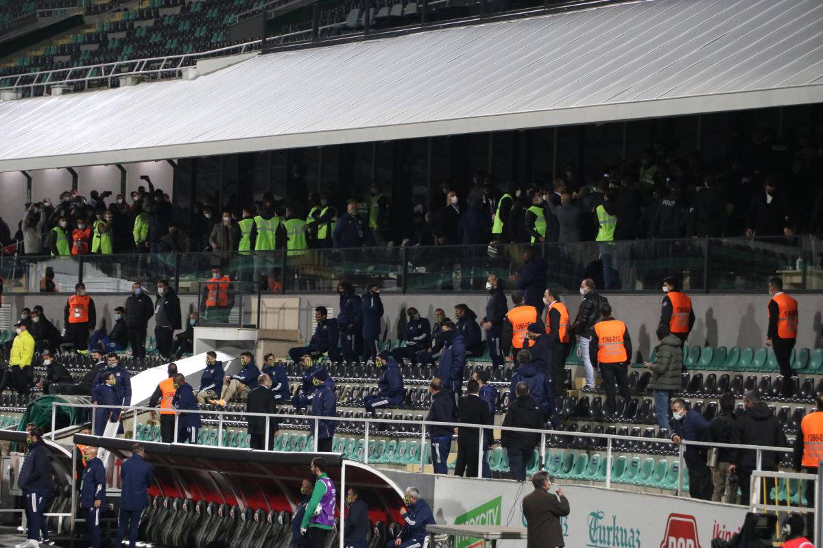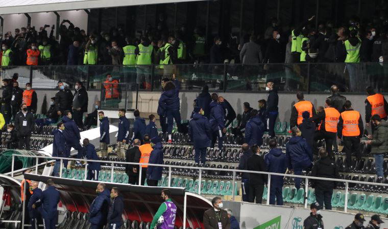 Yeşil siyahlı takımın yöneticileri maç başlangıcından itibaren hakım Ali Palabıyık'ın kararlarına tepki gösterirken, Fenerbahçeli yöneticiler de bu itirazlara sözlü karşılık verdi. İki takım yöneticileri arasında yaşanan gerginliği polis ve özel güvenlik çalışanları büyümeden yatıştırdı