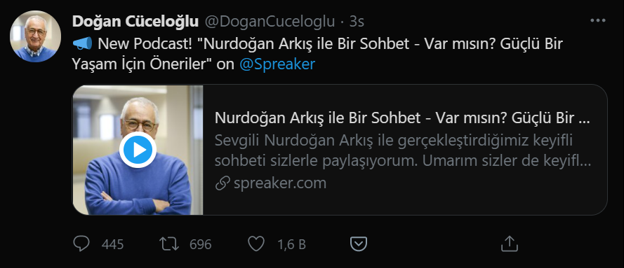 Cüceloğlu, ölüm haberinden yaklaşık 2 saat önce Twitter hesabından bir paylaşımda bulunmuştu.