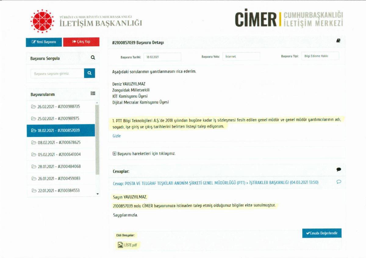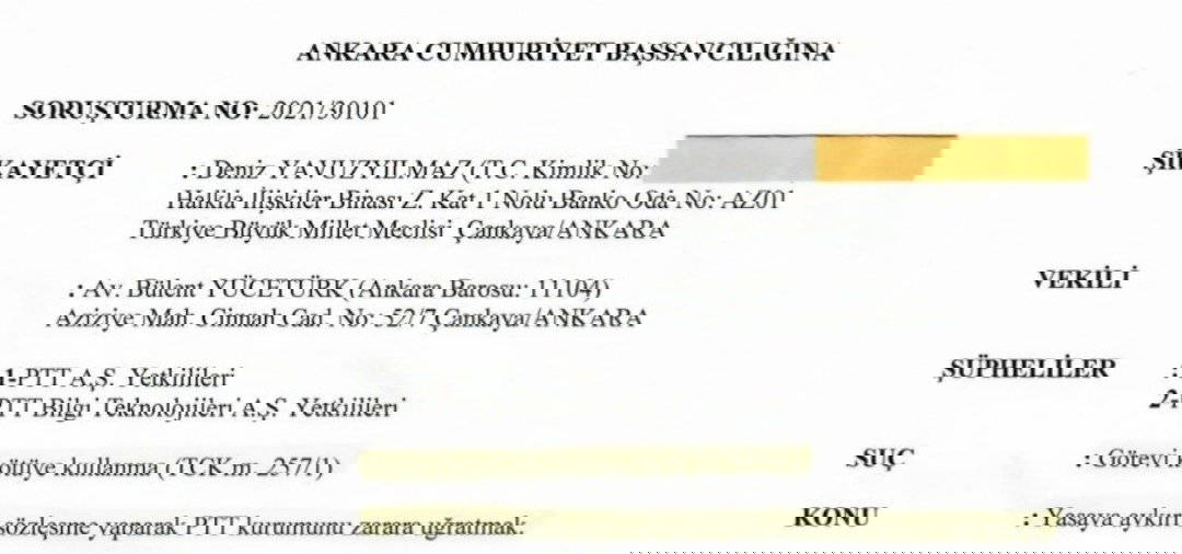 CHP'li Milletvekili Yavuzyılmaz, Sayıştay'ın 2019 raporunda ortaya çıkan skandalın bir benzerini daha gün yüzüne çıkardı. Belgeleri sosyal medya hesabından yayımlayan Yavuzyılmaz, 4 yetkiliye PTT'de 1 yıl çalıştıktan sonra sözleşmesi feshedilerek 36 kat tazminat ödendiğini açıkladı.
