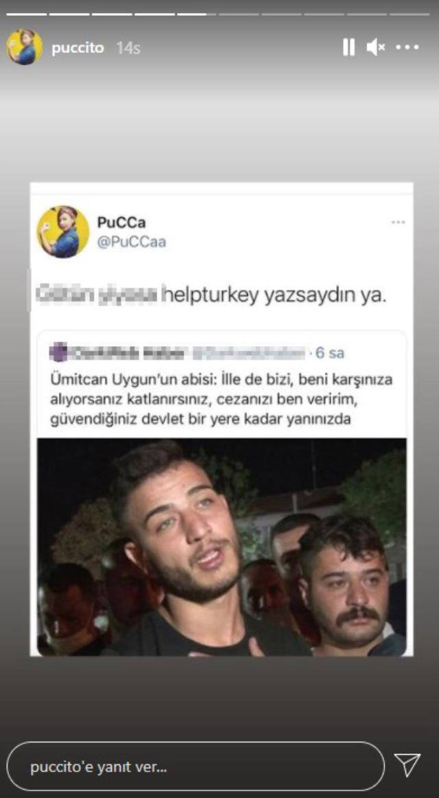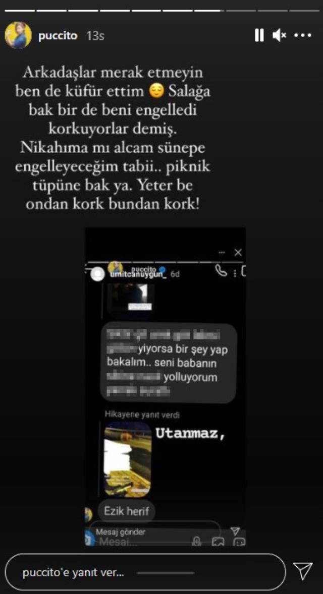 Pucca da bunun ardından Ümitcan Uygun'un hesabından yapılan paylaşımlara küfür ederek cevap verdi. Pucca'dan kardeşinin hesabına gelen mesajları hikaye kısmından paylaşan Uygun, "Utanmaz" yazdı.