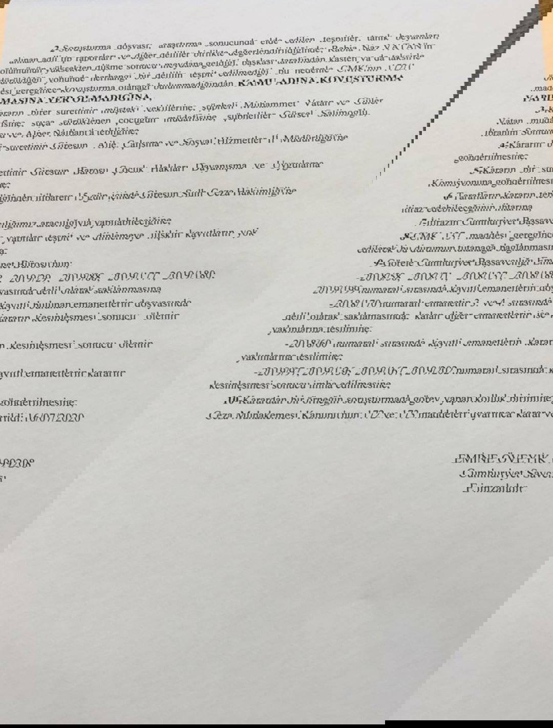 "Davanın savcısı çıkan kararnameyle gitmeden dosyayı kapatmak istedi. Kendini suçlu hisseden savcı, dosyadan kurtulmak için takipsizlik kararı çıkardı. Bu nasıl bir vicdansızlık? Bize bunu açıklasınlar. Adalet Bakanı Abdülhamit Gül, 'Ben savcılarıma güveniyorum' demişti. Sayın Gül'e soruyorum: Vicdanı rahat ediyor mu?"