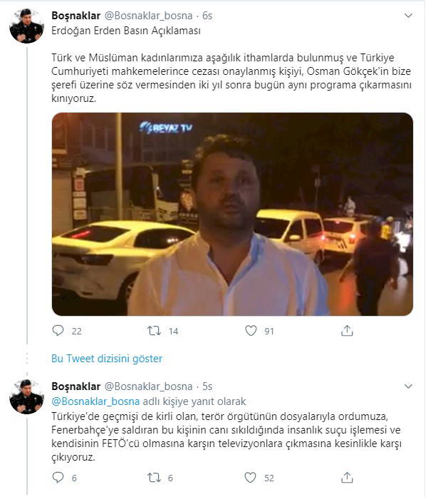 Sosyal medyada, “Beyaz TV'de bu sabah Boşnaklara ırkçılık yapan Rasim Ozan Kütahyalı ekranlardaydı. Boşnak camiası olarak hiçbir yerde görmek istemiyoruz. #BoşnaklarROKuİstemiyor” mesajı paylaşıldı.