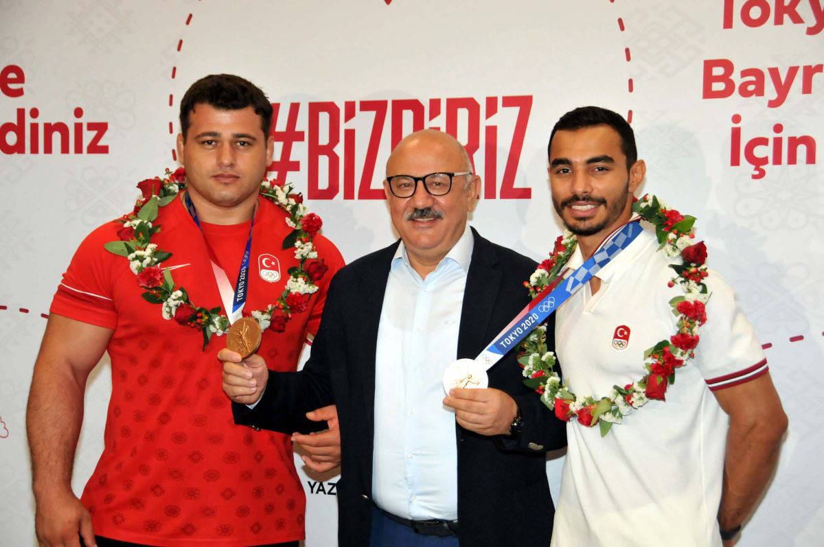 Japonya'nın başkenti Tokyo'da düzenlenen 32. Yaz Olimpiyat Oyunları'nda bronz madalya kazanan grekoromen güreş 130 kiloda Rıza Kayaalp ve artistik cimnastik paralel barda Ferhat Arıcan'ın da aralarında bulunduğu kafile İstanbul'a geldi.