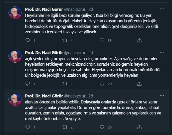 Prof. Dr. Naci Görür, Doğu Kradeniz'de yaşanan ve özellikle Rize ile Artvin'de etkili olan sel ve heyelanlar hakkında bilgi verdi. Rize ve Artvin'de yaşanan sel ile heyelanlar, 6 yurttaşın yaşamını yitirmesine ve birçok maddi hasar oluşmasına neden oldu. Konuyla ilgili çok sayıda soru geldiğini belirten Görür, dikkat çeken bilgiler verdi.