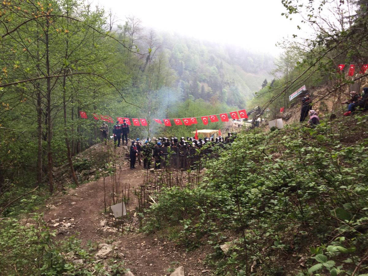 Bölgenin doğal yapısına dokundurmamaya kararlı olan köylülerin eylemi dördüncü gününe girerken güvenlik güçlerinden biber gazlı müdahale geldi.