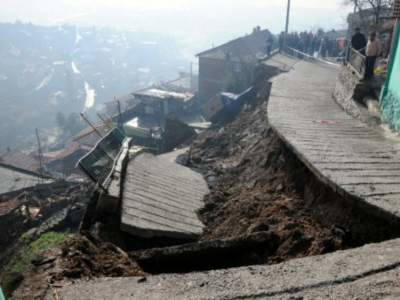 Toprak kayması nedeniyle ulaşıma kapanan karayolunun açılması için çalışma başlatıldı.