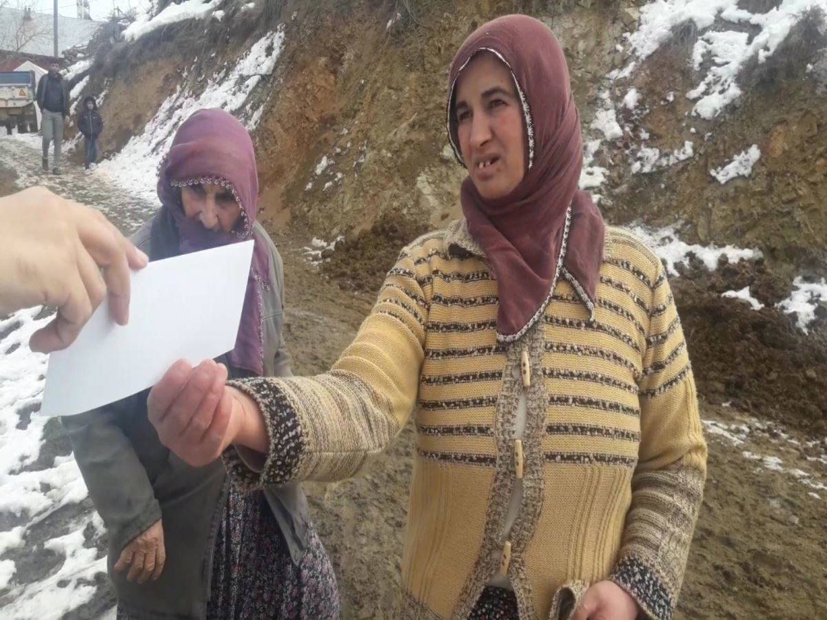 Hayırseverin yardımda bulunduğu Cahide Erdağ, depremde damadını, eniştesini ve komşusunu kaybettiğini söyleyerek, "Hayırsever vatandaş buraya geldi. Zarfın içinde para verdi, yiyecek-içecek yardımında bulundu. Bana 5 koyun, 3 tane dana verdi" ifadelerini kullandı.