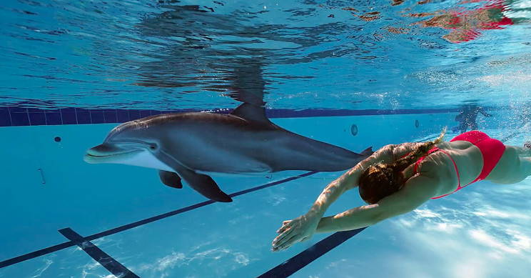 Uzaktan kumandayla kontrol edilen robot yunusla yüzen bir gönüllü, “Onu ilk gördüğümde gerçek olduğunu düşündüm” dedi.