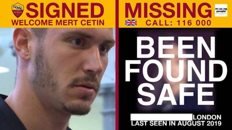 Roma kulübünün sosyal medya hesabından yapılan paylaşımda, "Harika Haber! Bulundu! Roma'nın 6 gün önce transfer anonsunda gösterdiği kayıp genç kız, İngiltere'nin Londra şehrinde güvenli ve iyi bir şekilde bulundu." ifadeleri kullanıldı.