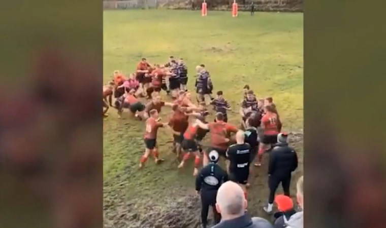İngiltere'de oynanan rugby müsabakası sırasında takımlar arasında arbede çıktı. Her iki takımdan da 2 oyuncu kırmızı kartla cezalandırılırken, disiplin kurulu da olayla ilgili inceleme başlattı. O anlar bir seyirci tarafından saniye saniye kaydedildi.