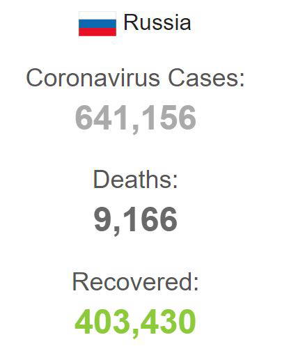Dünyada en fazla vakanın görüldüğü üçüncü ülke konumuna gelen Rusya’da son 24 saatte 6 bin 719 kişide daha virüs tespit edilmesiyle toplam vaka sayısı 641 bin 156’ya yükseldi. Rusya Sağlık Bakanlığı, ülkede 93 kişinin daha öldüğünü, toplam can kaybının ise 9 bin 166’ya ulaştığını açıkladı.