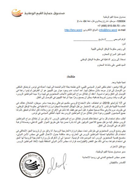 Malkeviç’in Libya Başbakanı Fayiz es-Serrac’a gönderdiği mektupta, “Rus vatandaşlarının serbest bırakılması için mümkün olan bütün etkinizi kullanmanızı sizden rica ederim. Eminim ki, Rus vatandaşlarının serbest bırakılması, bütün uluslararası aktörler tarafından iç diyalog yolunda iyi niyet göstergesi ve tarafların anlaşma arzusunun garantisi olarak algılanacaktır” ifadeleri yer aldı.