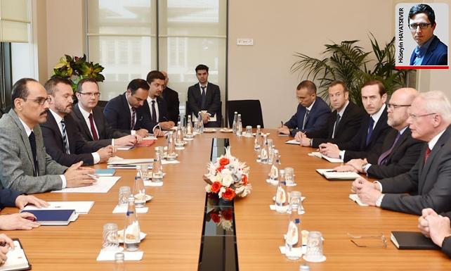 Bu arada Cumhurbaşkanlığı Sözcüsü İbrahim Kalın, ilk olarak randevu talebine olumlu yanıt vermemesine karşın dün sürpriz bir kararla Jeffrey’le görüştü. Jeffrey’in Ankara ziyareti 22-23 Temmuz tarihlerinde iki gün süreceği açıklanmıştı. Buna rağmen Jeffrey ziyaretini uzattı ve daha önce Kalın’ın “programına uymadığı” gerekçesiyle gerçekleşmeyeceği belirtilen görüşme dün gerçekleşti. Beştepe’deki Cumhurbaşkanlığı Sarayı’nda gerçekleşen Kalın ve Jeffrey başkanlığındaki heyetler arası görüşmede güvenli bölge başta olmak üzere Suriye’deki gelişmelerin ele alındığı belirtilirken Türkiye’nin güvenli bölge konusundaki önceliklerinin ABD heyetine iletildiği bildirildi.
