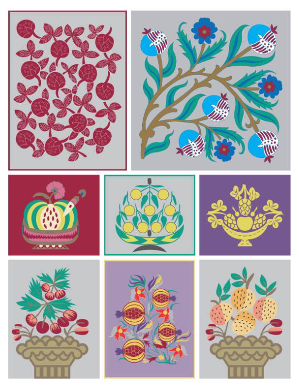 Burada basılan kataloğun estetiğinden ve albenisinden bahsetmeden geçemeyeceğim. Hülya Bilgi bu stilize edilmiş motiflere “vektörel çizim” diyor. Grafik tasarımcılar için yabancı bir terim değil herhalde. Motifler müthiş bir renk kompozisyonu üzerine stilize edilerek baskıya hazırlanmış. Kitapta 466 motif var ama vitrinlere 135’i konulabilmiş. Göremediğimiz motifleri her vitrinin önüne yerleştirilen dijital ekrana hafif bir dokunmayla çekebiliyoruz.