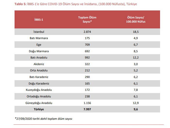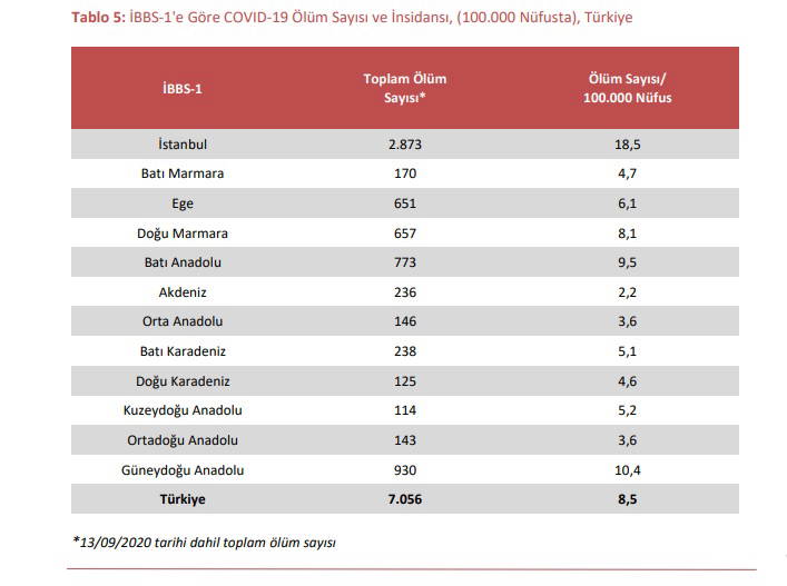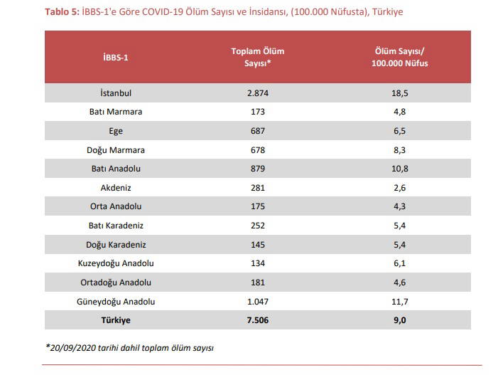 20.09.2020 tarihli raporda ise ölüm sayısında 1 artış var ve İstanbul'da ölüm sayısı 2874 olarak açıklanmış.