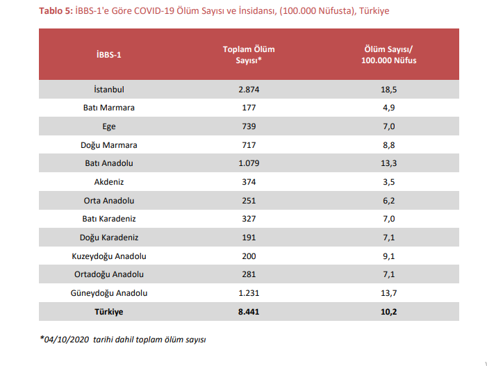 Ve en son yayınlanan 04.10.2020 tarihli raporda İstanbul'da ölüm sayısı 2874.