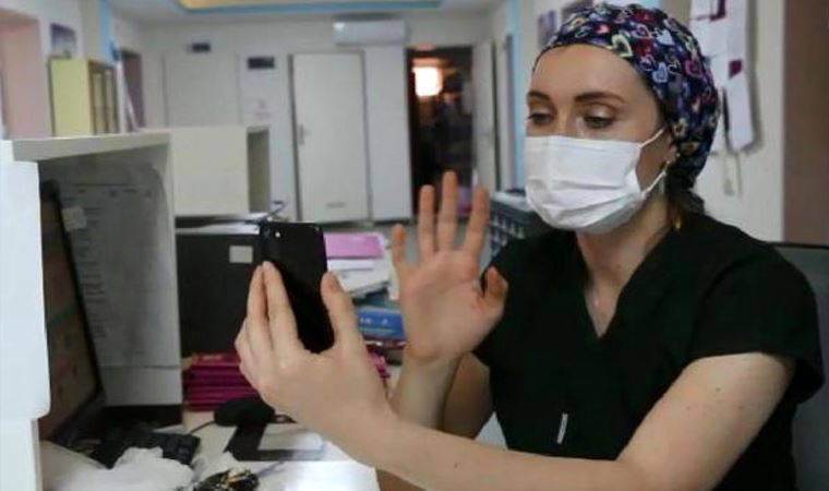 Sağlık Bilimleri Üniversitesi (SBÜ) Sultan 2. Abdülhamid Han Eğitim ve Araştırma Hastanesi ile İstanbul İl Sağlık Müdürlüğü 112 İl Ambulans Servisi Anadolu Komuta Kontrol Merkezi’nde görevi başında bulunan sağlık çalışanı anneler çocuklarıyla hasret gidermek için telefonla görüntülü konuşuyor. Acil Tıp Teknisyeni Dilek Türk, çocuklarıyla konuşurken gözyaşlarını tutmadı.