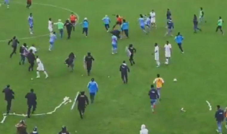 Yaşanan bu olayların ardından oyun yaklaşık 10 dakika durduktan sonra maç kaldığı yerden devam etti. Mücadelenin son saniyesinde ise hakem ev sahibi ekipten bir futbolcuya kırmızı kart gösterip maçı bitirdi. Karşılaşmanın sona ermesiyle saha bir anda karıştı! Deportivo Garcilaso’nun yedek kulübesinden koşarak sahaya giren bir antrenör hakeme top fırlattı. Hakeme saldırı sonrasında rakip kaleciye de tekme atan ev sahibi ekibin futbolcuları, hakeme yöneldi. Taraftarların da sahaya girip rakip takım oyuncuları ve hakeme doğru saldırmasının ardından sahaya giren korumalı ve joplu polisler, hakemlerin etrafında kalkan olurken büyük bir felaketin de önüne geçmiş oldular.
