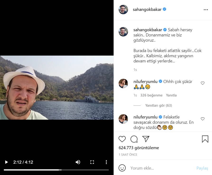Türkiye'de yurttaşlar, 28 Temmuz'dan bu yana farklı alanlarda peş peşe çıkan orman yangınlarıyla mücadele ediyor. Marmaris'te bulunan ve yangının başından beri bölgede canlı yayın yaparak yetkililerden yardım isteyen komedyen Şahan Gökbakar, son olarak orman yangınının Marmaris'teki evine ulaşmadan söndürülme işleminin başarıyla gerçekleştiğini açıkladı.