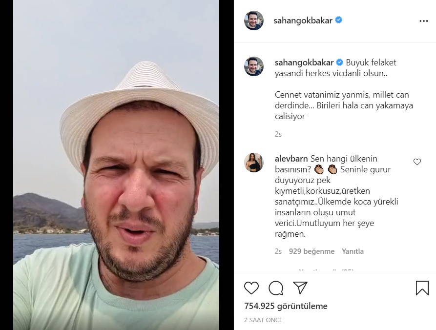 "Siz hangi ülkenin sanatçılarısınız" başlığını kullanan yandaş medyaya, yangın bölgesinden yayınlar yapan Şahan Gökbakar da sanatçıları hedef alan manşete sosyal medya üzerinden tepki gösterdi. "İnsanları fişlemeyi, toplumu ayrıştırmayı bırakın" diyen Gökbakar "Siz hangi ülkenin basınısınız" diye sordu.