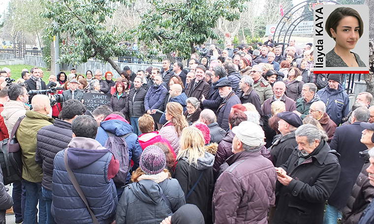 CHP Üsküdar Belediyesi İlçe Başkalığı üyeleri de dün Üsküdar’daki sahte seçmenlerin kaydının silinmesi istemiyle ilçe seçim kuruluna yaptıkları itirazın reddedilmesine tepki gösterdi. Üsküdar İlçe Seçim Kurulu Başkanlığı önünde, aralarında CHP Üsküdar İlçe Başkanı Olcay Kurt, eski CHP İstanbul milletvekili Barış Yarkadaş ve Üsküdar Belediyesi başkan aday adayı avukat Onur Cilgil’in de bulunduğu kalabalık bir grup bir araya geldi. Burada konuşan Olcay Kurt, Cumhuriyet döneminin en büyük seçim hilesinin yapıldığını söyleyerek, “İlçe örgütü olarak geceli gündüz lü yaptığımız çalışmalarda yaklaşık 7 bin yığma seçmen tespit ettik. 4-17 Ocak tarihleri arasında da itiraz dilekçelerimizi ilçe seçim kuruluna vererek hukuki süreçleri başlattık. İtirazlarımız neticesinde toplam 3 bölgeden oluşan ilçe seçim kurulunda 1. ve 3. ilçe seçim kurulları yaklaşık bin 200 kişiyi seçmen listesinden çıkardı. 2. seçim kurulunda ise seçim kurulu başkanı 2 bin 228 seçmene ilişkin itirazımızı reddetti. Beylerbeyi stadına yazılan seçmenler, boş arazi ve Kirazlı Tepe’de yıkılan binalardaki sahte seçmenlerin kayıtları silinmedi” diye konuştu. Kurt, ret kararını YSK’ye taşıyacaklarını ve sahte seçmen kaydı yapan memurlar hakkında suç duyurusunda bulunacaklarını söyledi