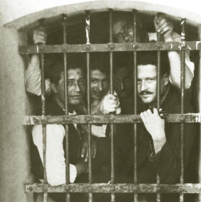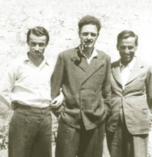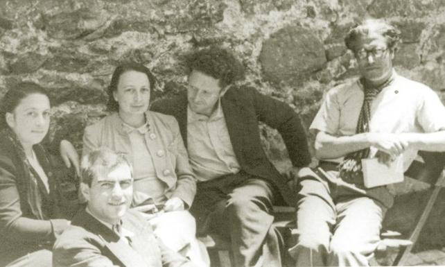 Çankırı Cezaevi avlusu: Piraye, Kemal Tahir, Piraye’nin kardeşi Fehamet, Nãzım, Hikmet Kıvılcımlı (soldan sağa)