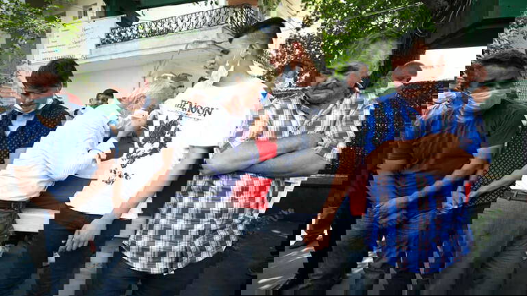 Hayatını kaybeden işçilerden Havva Çelik'in cenaze aracından indirilen tabutuna sarılan kardeşi Turan Topal, gözyaşlarına boğuldu.