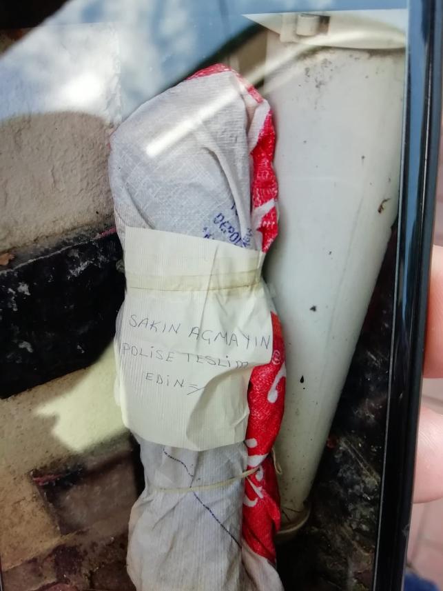 4 Temmuz Mahallesi İdris Gülbaş Sokak'taki bir binanın önünde üzerinde "Sakın açmayın polise teslim edin" yazısı bulunan çuval olduğu ihbarı üzerine İlçe Emniyet Müdürlüğü ekipleri harekete geçti.