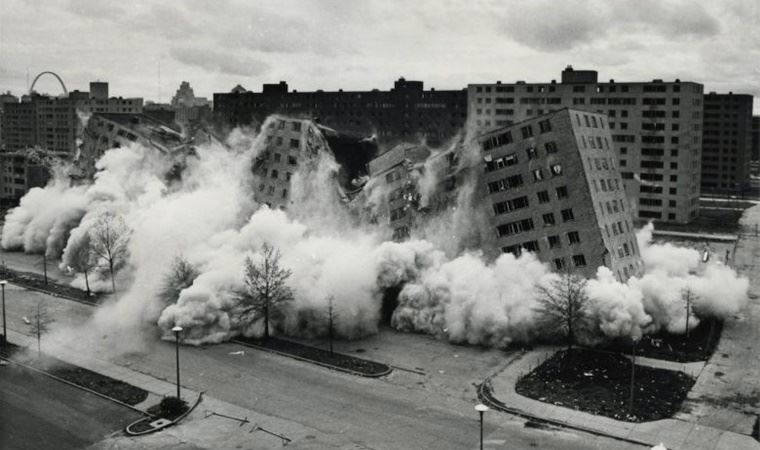 "Missouri eyaletinin St. Louis şehrinde yoksul kesimin yaşam alanları ve koşullarını iyileştirme hedefiyle inşa edilen Pruitt-Igoe sosyal konutları, kullanıma geçtiği 1956’dan sadece birkaç yıl sonra ihmal ve bakımsızlık nedeniyle işlevsizleşmeye başladı. Gitgide artan şiddet, suç ve ırkçılık olaylarıyla adını duyuran konutların 20 yıllık tarihi, ülke çapında çok yankı uyandıran bir dizi patlamayla son buldu."