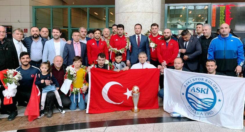 Milli güreşçileri, Ankara Esenboğa Havalimanı'nda aileleri, ASKİ Kulüp Başkanı Mehmet Genç ve sporcular karşıladı. Çiçekler ve meşaleler ile karşılanan güreşçiler sonrasında basın mensuplarının sorularını cevapladı.