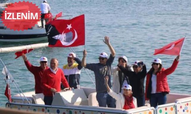 Bütün teknelerde kalpaklı Atatürk’üm... Bütün teknelerde Türk bayrakları... Güneş ve hafif bir rüzgâr... Gözlerimi bayrağımın güzelliğinden, Mustafa Kemal’in gözlerinde ayıramıyorum. Tekneler safları sıklaştırdı... Sahilden marşlar, şarkılar bizi karşılıyor. Arada hem karadan hem teknelerden “Mustafa Kemal’in Askerleriyiz” diye tempo tutmalar... Sonra ortalık yine duruluyor... Birbirine sarılan, ağlayanlar...