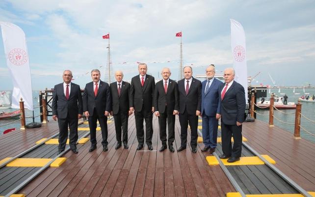 İktidar ile muhalefet, Samsun'daki 100. yıl kutlamalarında bir araya geldi. Cumhurbaşkanı Erdoğan, törene katılan CHP lideri Kılıçdaroğlu ve MHP lideri Bahçeli ile selamlaştı. Erdoğan'ın konuşmasının ardından tüm liderler Tütün İskelesi'nde birlikte poz verdi.