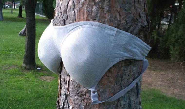 Samsun’da yurttaşların uğrak yeri olan bir parkta ağaçlara kadın iç çamaşırı asıldı.
