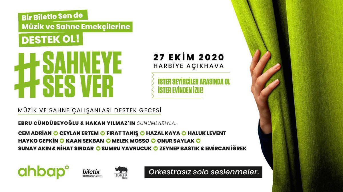 Tüm gelirlerin sahne sanatçılarına destek olmak için kullanılacağı gecede sahneye çıkacak isimler arasında Cem Adrian, Ceylan Ertem, Fırat Tanış, Hazal Kaya, Haluk Levent, Hayko Cepkin, Kaan Sekban, Melek Mosso, Onur Saylak, Sunay Akın & Nihat Sırdar, Sumru Yavrucuk ve Zeynep Bastık & Emircan İğrek yer alıyor.