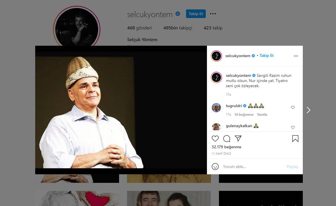 Selçuk Yöntem: Sevgili Rasim ruhun mutlu olsun. Nur içinde yat. Tiyatro seni çok özleyecek.