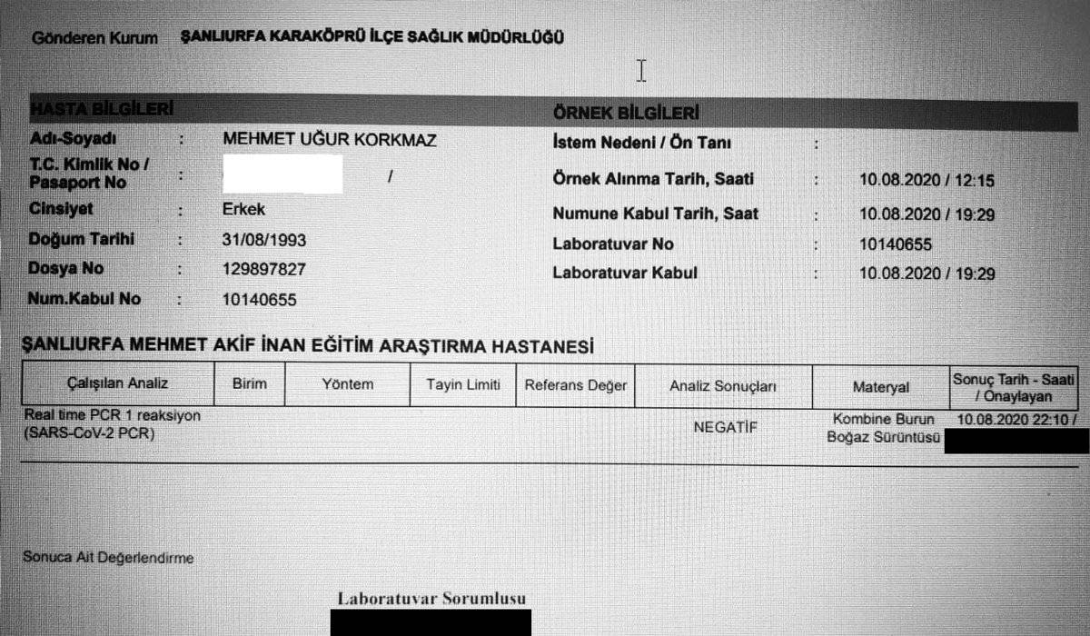 Test sonuçlarını paylaşan Welat Akuş, “07.08.2020 tarihinde yapmış olduğum COVID-19 test sonucu bugün (11.08.2020) çıktı. 4 gündür sonucu beklerken çalışmaya devam ettim. Ve şu an insanlarla dolu şehir otobüsüyle eve gidiyorum. İşte sözünü ettikleri corona virüsüne karşı önlem, tedbir, mücadele budur” diye yazdı.