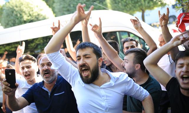 Suriye Dernekler Platformu'nun protesto eyleminde basın açıklaması yapıldığı sırada bir grup "Ne Mutlu Türküm Diyene" şeklinde slogan atarak eylem yapan kişilerin üzerine yürüdü. Polis araya girerek olaya müdahale etti. Gözaltına alınan 8 kişinin olduğu öğrenildi.
