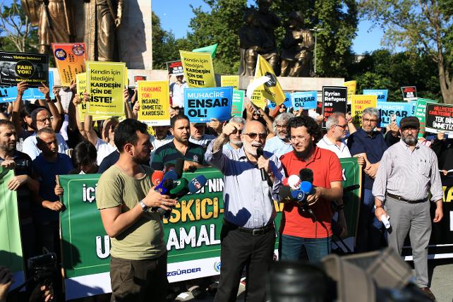 Eylemde, “Muhacir gardiyan değil Ensar olalım”, “İçişleri Bakanlığı’nın muhacirlere yönelik baskıcı yasakçı uygulamalara hayır” pankartı açılırken, “Kendin için istediğini kardeşin içinde iste”, “Milliyetçilik cahiyilesine karşı tek bir ümmetiz”, “Muhacire Ensar ol”, “Farkımız yok insanız, ümmetimiz, kardeşiz”, “Yeryüzü ve gökyüzü ve hayat herkesin” dövizleri taşındı. Basın açıklamasının yapılacağı sırada ise bir yurttaş eylemcilere tepki gösterdi. Eylemciler ise yurttaşı darp etmeye kalkıştı. Polis tepki gösteren yurttaşı gözaltına aldı. Ancak parkın dışında bekleyen grubun eylemcilere yönelik saldırısı açıklama boyunca defalarca kez devam etti. Polis çıkan olaylara biber gazı ile müdahale etti. 10’u aşkın kişi gözaltına alındı.