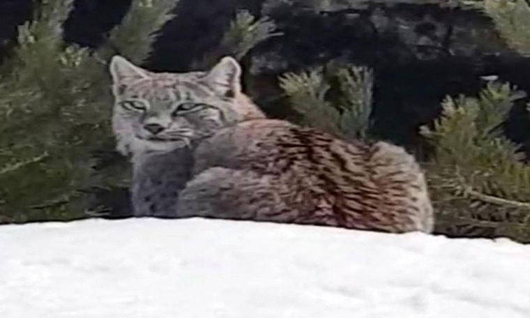 Sarıkamış Handere Köyü sınırları içerisinde ailesiyle birlikte yolculuk yapan Davut Çınar, yol kenarında vaşak gördü. Aracını durdurak cep telefonuna sarılan Çınar, bir süre vaşakı kaydetti. Vatandaşlar tarafından izlendiğini gören vaşak daha sonra kaçarak bölgeden uzaklaştı.