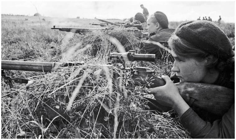 - Vera Danilovtseva, çavuş, keskin nişancı: “O gün randevum vardı… Uça uça gittim… Sevdiğim çocuğun bana ilan-ı aşk edeceğini düşünüyordum ama o üzgün geldi: ‘Vera, savaş başlamış! Bizi derslerden alıp doğruca cepheye yolluyorlar,’ dedi. Askeri lisede okuyordu. E tabii ben de kendimi derhal Jeanne d’Arc rolünde hayal ediverdim. Tüfeği omuzlayıp cepheye gitmekten aşağısı kurtarmazdı beni. Birlikte olmalıyız! Birlikte olalım yeter! Hemen askerlik şubesine koştum; sert bir şekilde kestirip attılar: ‘Şimdilik sadece tıbbi personel gerekiyor. Onun da altı aylık öğrenim süresi var.” Altı ayda kafayı yiyebilirdim! Âşıktım âşık… Beni bir şekilde okumam gerektiğine ikna ettiler. Peki, okurum, ama hemşirelik değil… Silah kullanmak istiyorum! Sevdiğim çocuk gibi ateş etmek. O kadar ki birlikte öleceğimizi hayal ederdim. Aynı muharebede…Tiyatro enstitüsü öğrencisiydim. Aktris olmayı hayal ediyordum. İdolüm Larisa Reissner’di (1895-1926: Rusya iç savaşına katılmış Polonya kökenli devrimci, gazeteci, şair, yazar).”