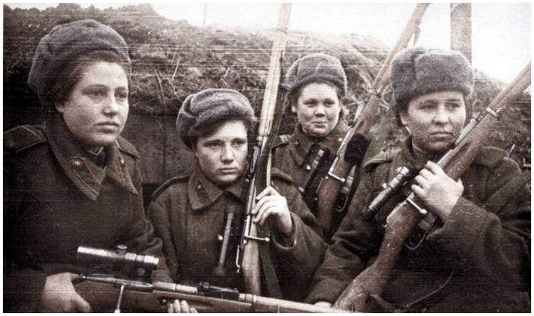 İkinci Dünya Savaşı’na gelindiğinde kadınlar artık dünyanın birçok ülkesinde çeşitli askeri birliklerde hizmet veriyor: İngiliz ordusunda 225 bin, Amerikan ordusunda 450-500 bin, Alman ordusunda 500 bin kadın yer alıyor. Sovyet Ordusu’nda bir milyon kadar kadın savaşıyor.