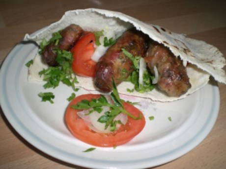 b) Koyun veya keçi kıyması soğan, maydanoz ve baharatla yoğrulup terp denilen hayvan iç yağına sarılır, köfte halinde hazırlanır ve kömürde pişirilir.
