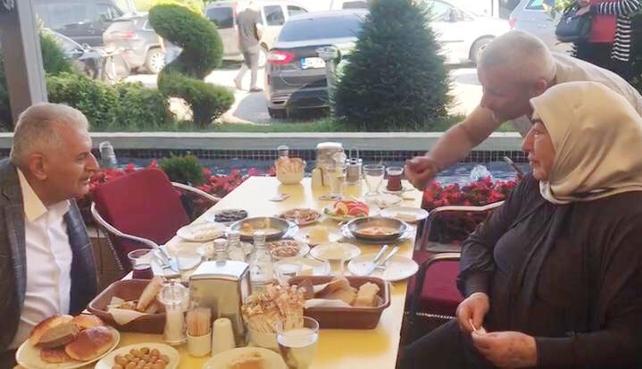 Bu sabah, İstanbul Tuzla'daki evlerinden, karayoluyla Ankara'ya giden Binali Yıldırım ve eşi Semiha Yıldırım, Sakarya'nın Hendek ilçesinde bulunan dinlenme tesisinde mola verdi. Binali Yıldırım ve eşi Semiha Yıldırım ile burada kahvaltı yaptı. Yaklaşık 1 saat dinlenme tesisinde kalan Yıldırım çifti, vatandaşlarla sohbet edip, fotoğraf çektirdi.