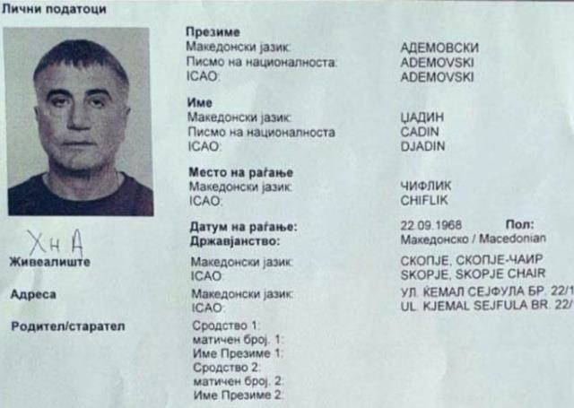 Tutuklanan polislerin Sedat Peker'e de sahte kimlik belgesi düzenlediği ortaya çıktı. Basına yansıyan belgede, Peker adına düzenlenen sahte kimlikte Djadin Ademovski ismi yer alıyor. Peker'in Makedonya'da Djadin Ademovski adını kullandığı öne sürüldü.