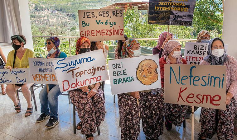 İzmir Seferihisar’da bulunan Orhanlı köyü, bölgede hayata geçirilmesi planlanan jeotermal enerji santrali (JES) projesinin tehdidi altında. Köyülülerin yaşam alanına yapılmak istenen JES projesinde, jeotermal sondaj kuyuları ile yardımcı kaynak olarak rüzgar enerji santrali (RES) ve güneş enerji santrali (GES) yer alıyor. Geçimini zeytincilikle karşılayan yöre halkı bölgedeki zeytin ağaçlarına zarar verecek olan JES projelerine karşı yaşam alanlarını savunmayı sürdürüyor. JES şirketi Karen Kahramanmaraş Elektrik Üretim A.Ş. yetkilileri tarafından 27 Temmuz Salı günü yapılmak istenen Halkın Katılım Toplantısı’nda tepkilerini bir kez daha dile getiren Orhanlı köylüleri, toplantıyı iptal ettirerek mücadelelerini sürdüreceğini belirtti.